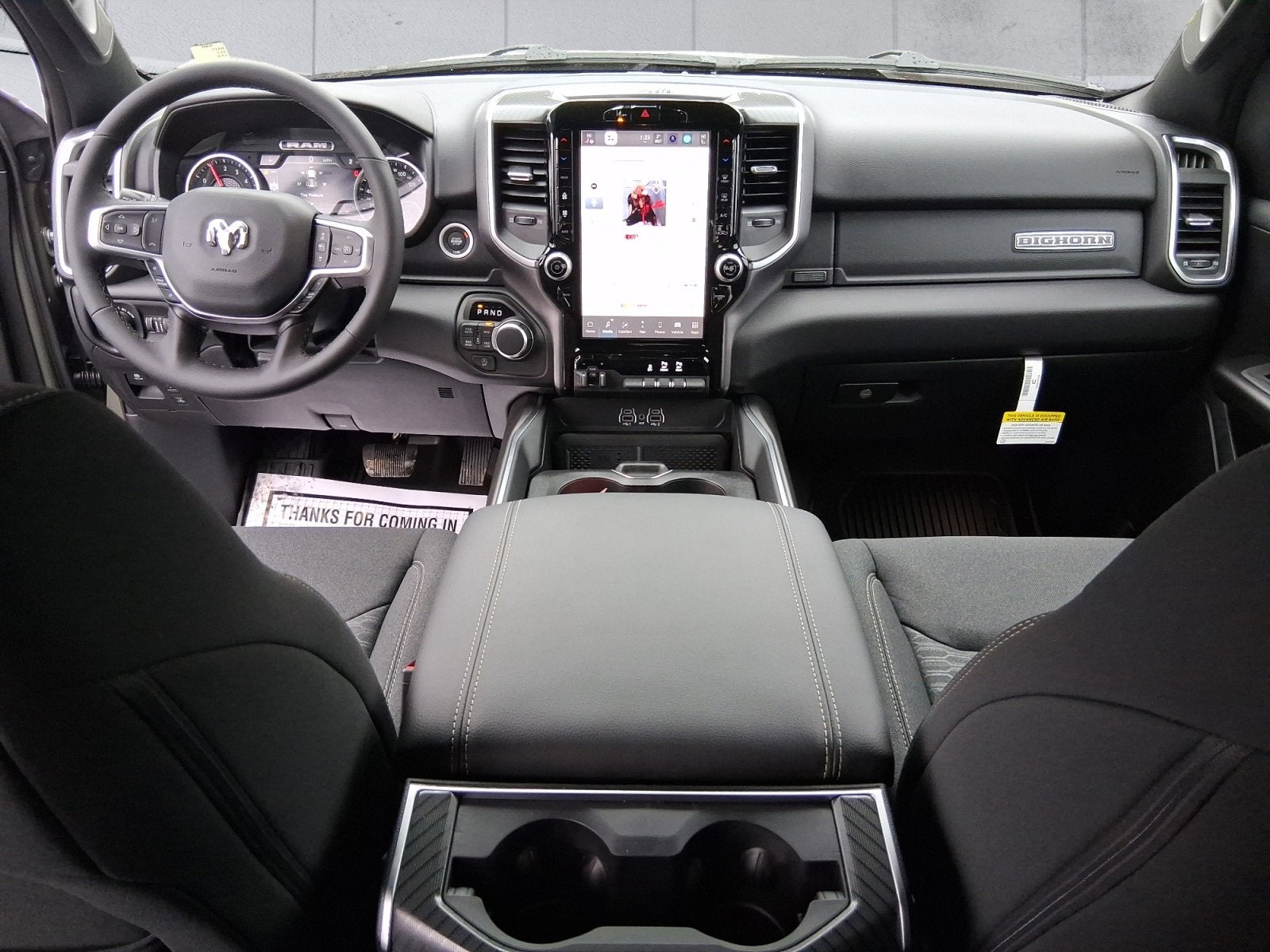 Featured Equipment: 1500 Big Horn/Lone Star, 4D Crew Cab, 3.0L I6, 8-Speed Automatic, 4WD, Canyon Lake, Black w/Cloth Bench Seat Or Deluxe Cloth Bucket Seats, 115V Auxiliary Power Outlet, 115V Auxiliary Rear Power Outlet, 12 Touchscreen Display, 2nd Row in Floor Storage Bins, 3 Rear Seat Head Restraints, 4 Way Front Headrests, 400W Inverter, 4G LTE Wi-Fi Hot Spot, 9 Amplified Speakers with Subwoofer, Accent Color Door Handles, Accent Color Premium Power Mirrors, Accent Color Tailgate Handle, Air Conditioning ATC with Dual Zone Control, Alloy wheels, Anti-Spin Differential Rear Axle, Apple CarPlay, Apple CarPlay/Android Auto, Auto High-beam Headlights, Auto Power-Folding Mirrors, Auto-Dimming Exterior Driver Mirror, Auto-Dimming Rear-View Mirror, Bed Utility Group, Big Horn Level 2 Equipment Group, Black Exterior Mirrors, Black Exterior Truck Badging, Black Headlamp Bezels, Black Interior Accents, Black Painted Exterior Mirrors Caps, Black Premium Power Mirrors, Black Tail Lamp Bezels, Body Color Fender Flares, Body Color Front Bumper, Body Color Rear Bumper with Step Pads, Bucket Seats, Center Console Parts Module, Cloth Bucket Seats, Cluster 7.0 TFT Color Display, Configurable Drive Mode, Connected Travel and Traffic Services, Connectivity - US/Canada, Convex Wide-Angle Exterior Mirror Insert, Deluxe Cloth Bucket Seats, Disassociated Touchscreen Display, Dual Exhaust with Black Tips, Electronic Stability Control, Exterior 115V AC Outlet, Exterior Mirrors Courtesy Lamps, Exterior Mirrors with Heating Element, Exterior Mirrors with Supplemental Signals, Front fog lights, Front Seat Back Map Pockets, Full Length Floor Console, Fully automatic headlights, Global Telematics Box Module, Glove Box Lamp, Google Android Auto, GPS Antenna Input, GPS Navigation, Grille Black Surround Black Mesh, HD Radio, Heated Front Seats, Heated Steering Wheel, Integrated Center Stack Radio, Integrated Voice Command with Bluetooth®, Leather Wrapped Steering Wheel, LED Dome Lamp with on/Off Switch, LED Footwell Lighting, Manual Adjust 4-Way Front Passenger Seat, Media Hub with 2 Charge Only USBs, MOPAR 4 Adjustable Cargo Tie-Down Hooks, MOPAR Front and Rear Rubber Floor Mats, MOPAR Spray in Bedliner, MyFlexCare Service Plan, Night Edition, Overhead LED Lamps, Pick-Up Box Lighting, Power 2-Way Driver Lumbar Adjust, Power Adjust 8-Way Driver Seat, Power Adjustable Pedals, Premium Overhead Console, Quick Order Package 21Z Big Horn, Radio: Uconnect 5 Navigation with 12.0 Display, RAM Grille Badge - Black, Rear 60/40 Folding Seat, Rear Center Armrest, Rear Power Sliding Window, Rear Underseat Compartment Storage, Rear Wheelhouse Liners, Rear Window Defroster, Remote Tailgate Release, Security Alarm, SiriusXM Radio Service, SiriusXM with 360L, Steering Wheel Mounted Audio Controls, Sun Visors with Illuminated Vanity Mirrors, Trailer Brake Control, Universal Garage Door Opener, USB Host Flip, Wheels: 20 x 9.0 Aluminum Painted Clad.