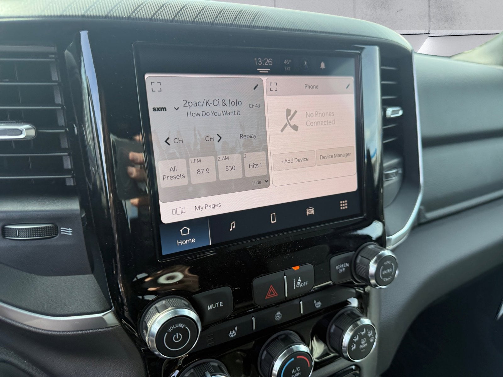 - BIG HORN LEVEL 1 EQUIPMENT GROUP -inc: SiriusXM Radio Service Rear Window Defroster Rear View Auto Dim Mirror Power Adjustable Pedals Leather Wrapped Steering Wheel Rear Power Sliding Window Rear Dome w/On/Off Switch Lamp Glove Box Lamp Auto Power-Folding Mirrors Auto Dim Exterior Driver Mirror Heated Front Seats Heated Steering Wheel Black Premium Power Mirrors SiriusXM Satellite Radio 400W Inverter Exterior Mirrors w/Supplemental Signals Steering Wheel Mounted Audio Controls Exterior Mirrors Courtesy Lamps Body Color Fender Flares 115V Auxiliary Power Outlet Universal Garage Door Opener 2nd Row In Floor Storage Bins Sun Visors w/Illuminated Vanity Mirrors