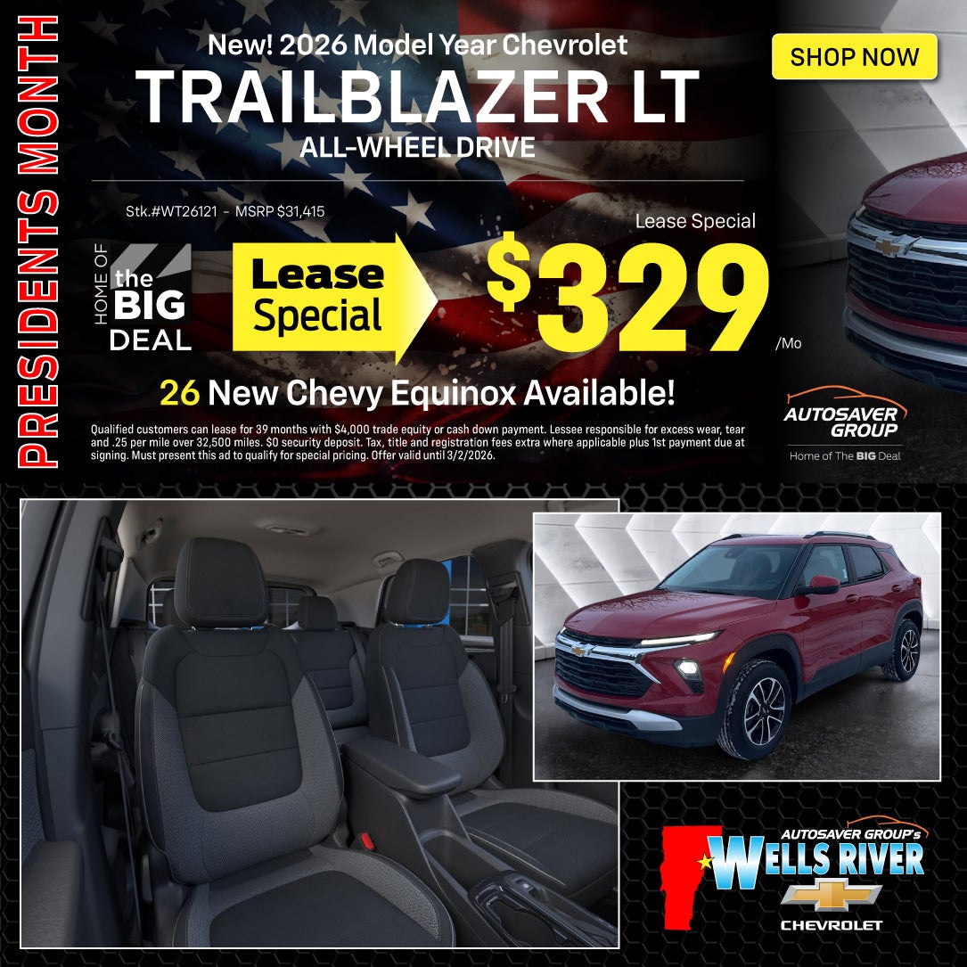 Qualified customers can lease for 39 months with $4,000 trade equity or cash down payment. Lessee responsible for excess wear, tear and .25 per mile over 32,500 miles. $0 security deposit. Tax, title and registration fees extra where applicable plus 1st payment due at signing. Must present this ad to qualify for special pricing. Offer valid until 3/2/2026.