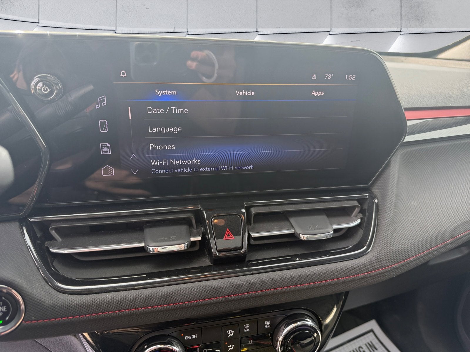 . TrailBlazer RS, 4D Sport Utility, 1.3L Ecotec Turbo DOHC SIDI w/VVT, CVT, FWD, Sterling Gray Metallic, Jet Black w/Red Accents w/Evotex Seat Trim, 1 Type-A & 1 Type-C USB Charging-Only Ports, 11 Diagonal HD Color Touchscreen, 120-Volt Power Outlet, Cabin Humidity Sensor, Convenience Package, Driver & Front Passenger Illuminated Vanity Mirrors, Driver Confidence Package, Dual-Pane Panoramic Power Sunroof, Exterior Parking Camera Rear, Hands-Free Power Programmable Liftgate, Inside Rear-View Auto-Dimming Mirror, Lane Change Alert w/Side Blind Zone Alert, Power driver seat, Preferred Equipment Group 1RS, Rear Cross Traffic Alert, Rear Park Assist, Single-Zone Auto Climate Control Air Conditioning, Wireless Charging.
